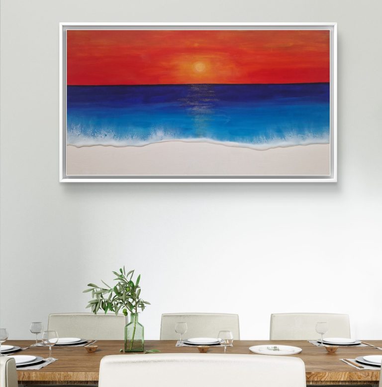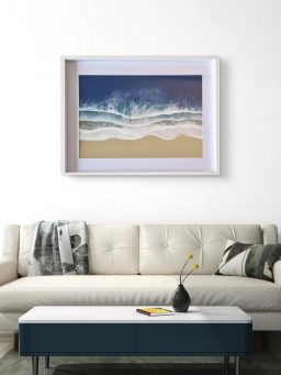 Resin is mixed with colour to make the beautiful deep blues and turquoise waters. Layered white waves create a 3D effect.